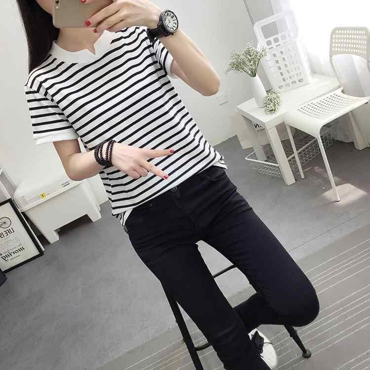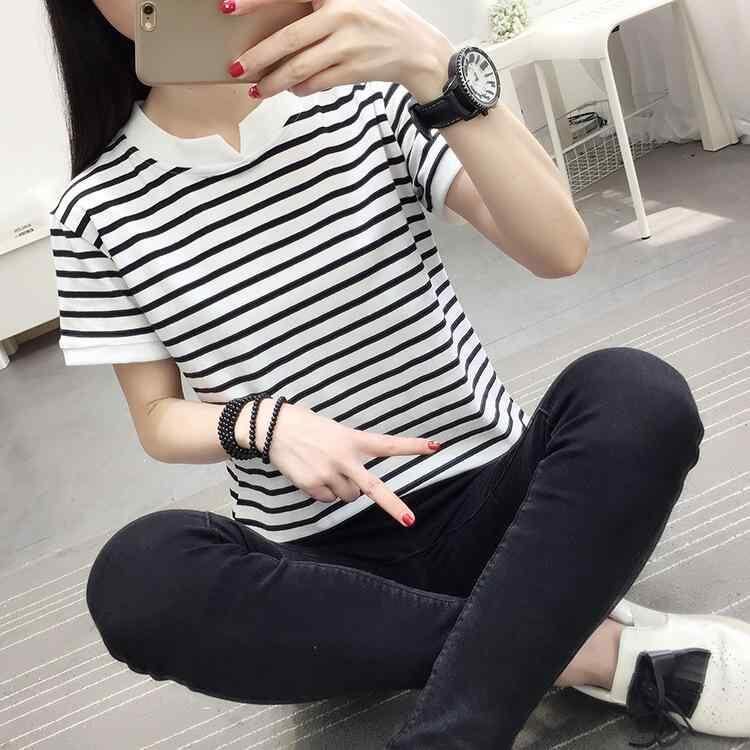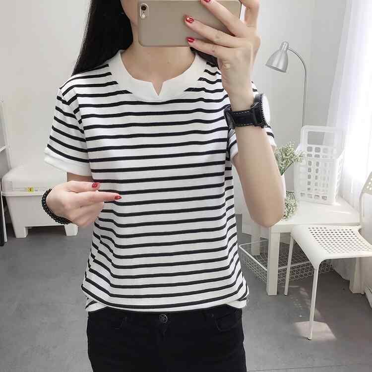 Tシャツ レディース 半袖 ショートスリーブ Vネック ゆったり ビッグシルエット コットン 綿 ストライプ ボーダー アシンメトリー 大きいサイズ 通勤 オフィス 普段使い カジュアル リラックス 白黒 ブラック ホワイト