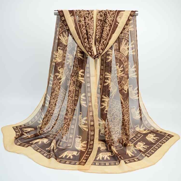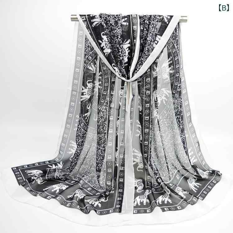 スカーフ レディース シフォン ロング 大判 プリント ゾウ柄 ストール ネックスカーフ マフラー 韓国風 欧米風 ストリートスタイル オールシーズン 普段使い 軽量 柔らか 滑らか