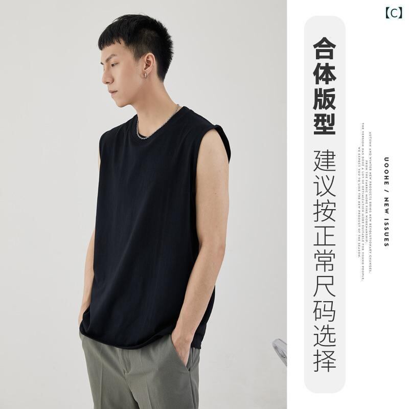 タンクトップ メンズ 男性用 シンプル ベーシック 無地 コットン 綿 ノースリーブ 夏 薄手 軽量 フィット感 インナー トップス カジュアル