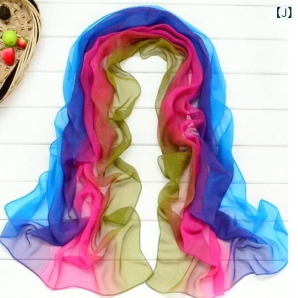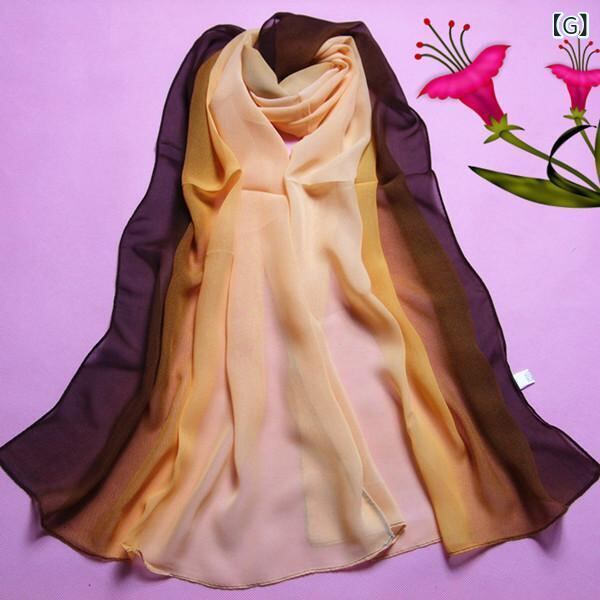ストール レディース 女性用 シフォン ガーゼ 平織り グラデーション 大判 ロング ショール スカーフ 韓国風 冷房対策 紫外線対策 ブラック ピンク ブルー パープル