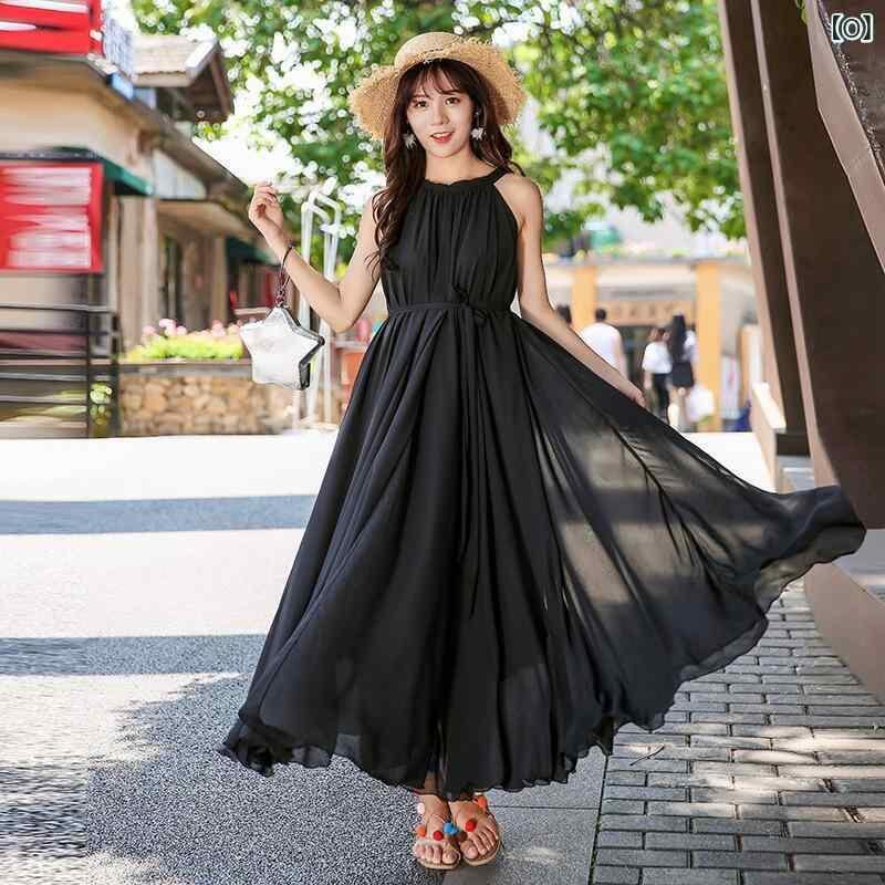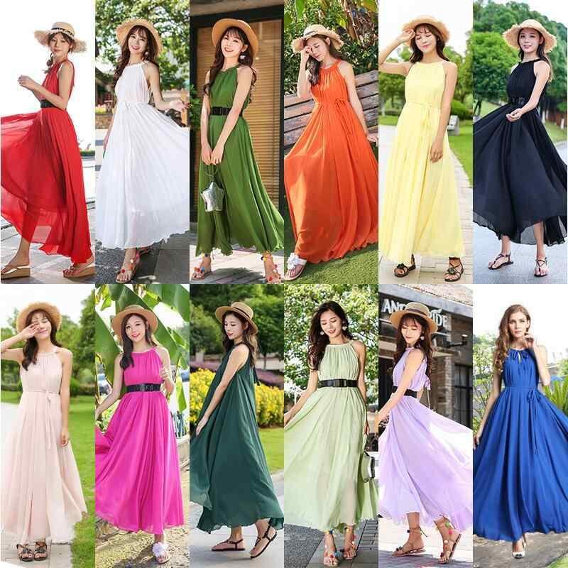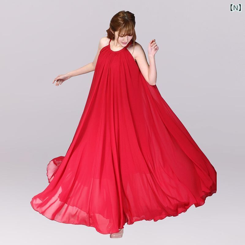 ワンピース レディース シフォン ロング丈 ホルターネック ノースリーブ 無地 ゆったり ポリエステル 上品 リゾート ビーチ バカンス 旅行 サマードレス 高級感 フェミニン かわいい お出かけ