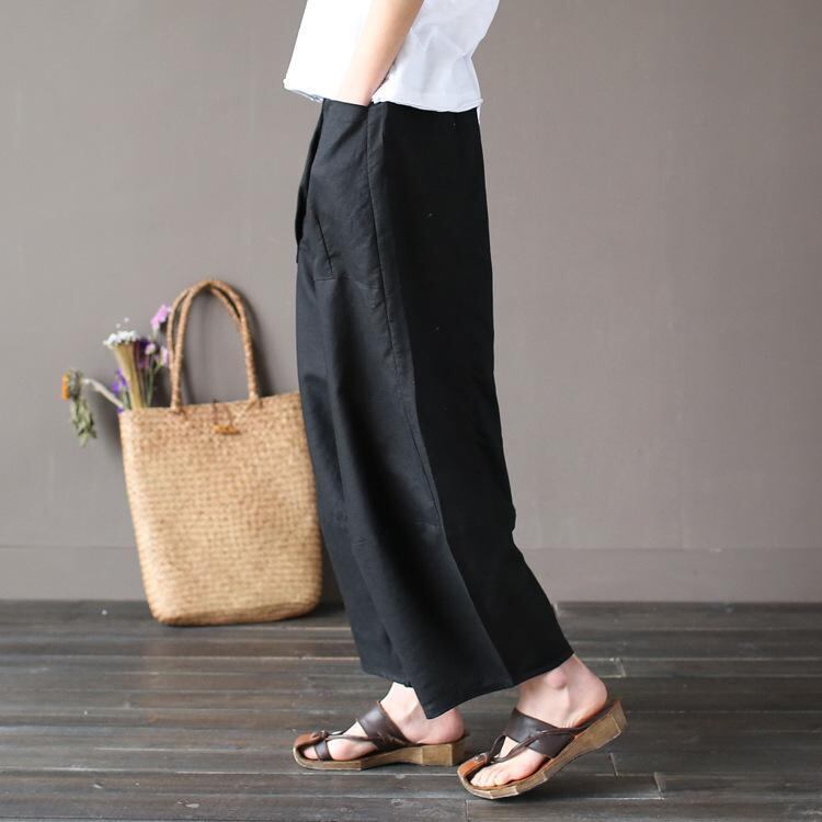 パンツ レディース 麻混 コットンリネン ゆったり ルーズシルエット ワイドパンツ 9分丈 アンクル丈 クロップド丈 ヴィンテージ加工 ウォッシュ加工 レトロ カジュアル ミッドライズ