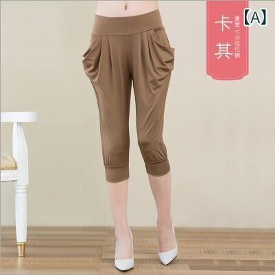 パンツ レディース 女性用 七分丈 ハーレムパンツ ジョガーパンツ 大きいサイズ ゆったり ストレッチ スタイルアップ 再生繊維 薄手 ポケット付き ハイウエスト カジュアル 通勤 ボトムス ブラック グレー カーキ