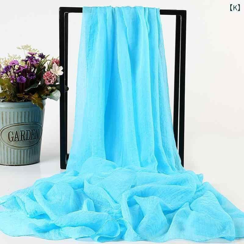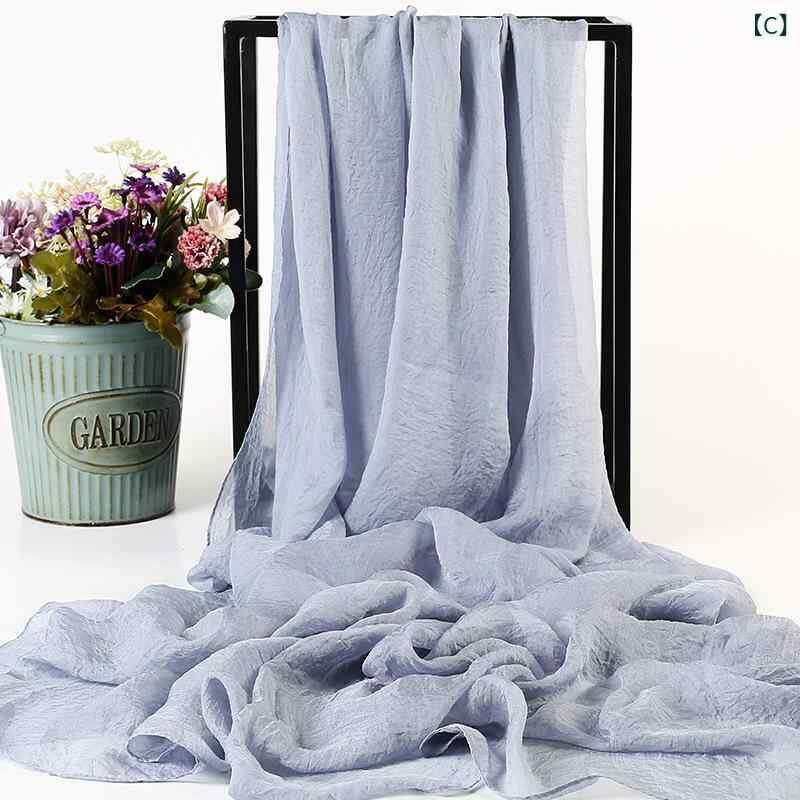 スカーフ レディース 再生繊維 シフォン 無地 プリーツ加工 ロング丈 超大型 ビーチ リゾート 日焼け対策 紫外線対策 冷房対策 羽織り 多機能 ショール