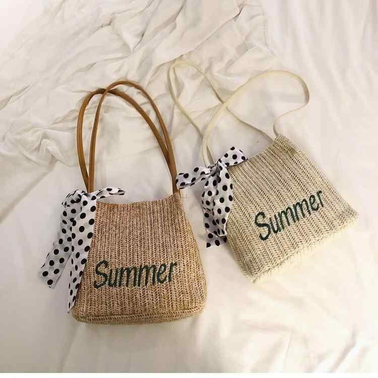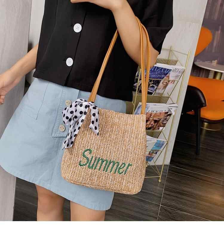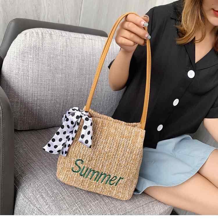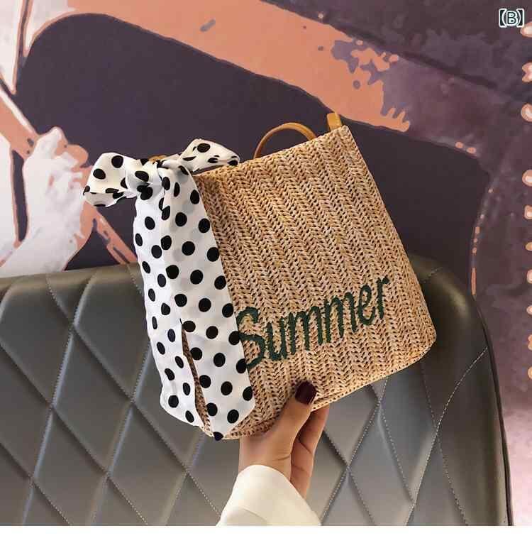 バッグ レディース スカーフ装飾 バケット型 カゴバッグ ストローバッグ 編み込み 手提げ 肩掛け 普段使い デイリーユース お出かけ 柔らかい 裏地なし ホワイト カーキ ベージュ系 鞄