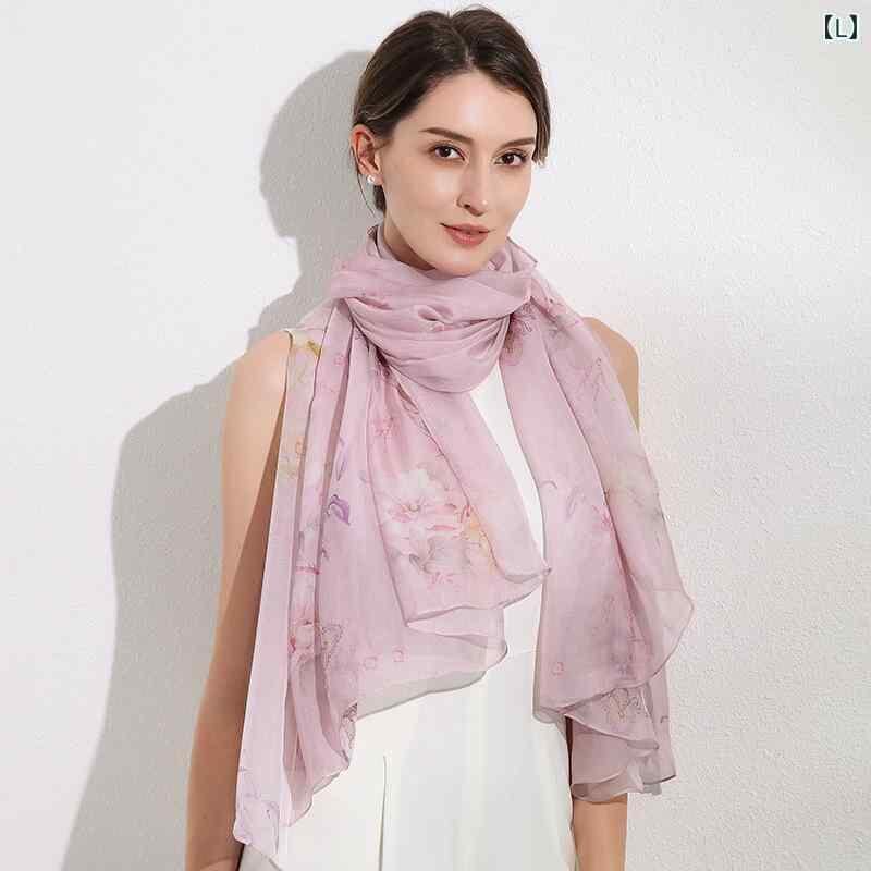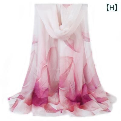 スカーフ レディース 大判 シルク シフォン 花柄 プリント UVカット 日焼け対策 夏 ビーチ リゾート ストール ショール エレガント カジュアル 上品な植物柄