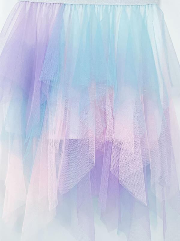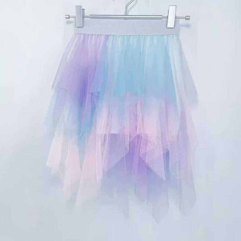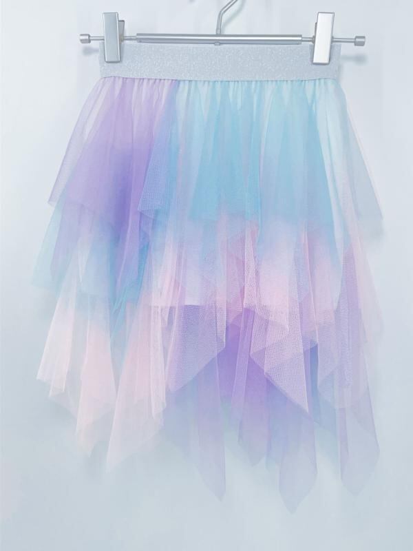 スカート キッズ 女の子 オールシーズン アシンメトリー ティアード レインボー カラフル チュールスカート ふわふわ ボリューム プリンセススタイル お洒落