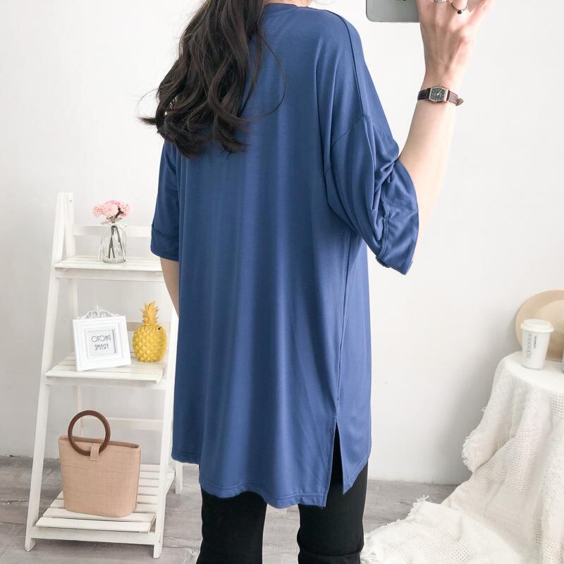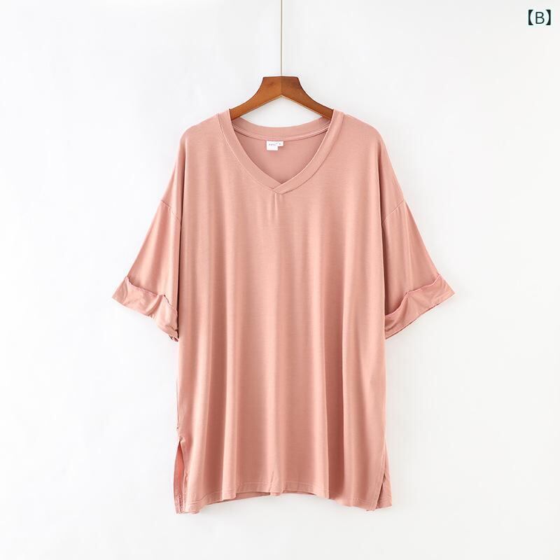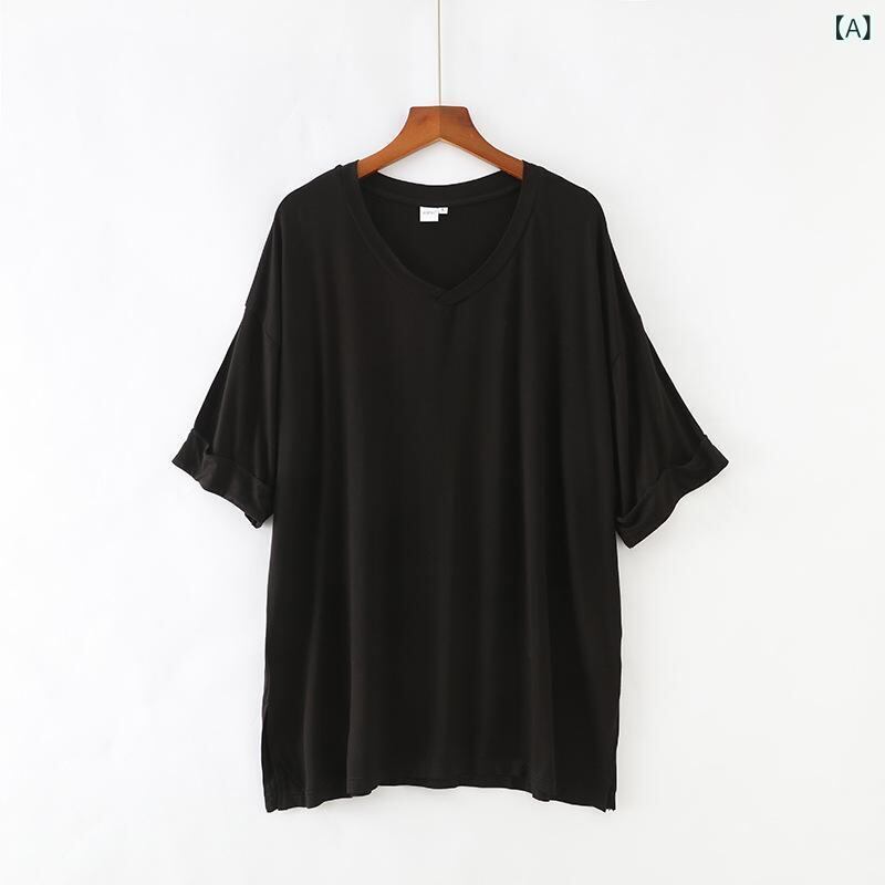Tシャツ レディース 大きいサイズ Vネック バットウィングスリーブ 半袖 モダール スパンデックス素材 ルーズフィット カジュアル 一枚着 トップス 無地