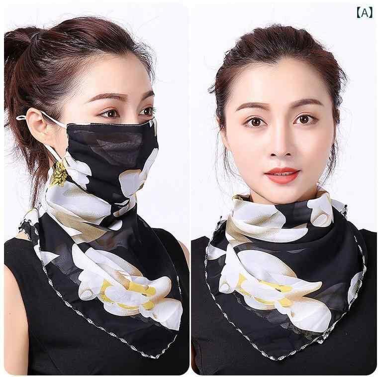 スカーフ レディース UVカット フェイスカバー ネックカバー 日焼け防止 三角形 シフォン 花柄 薄手 軽量 通気性 多彩な柄 日よけ アウトドア レジャー 夏用 ドライブ サイクリング
