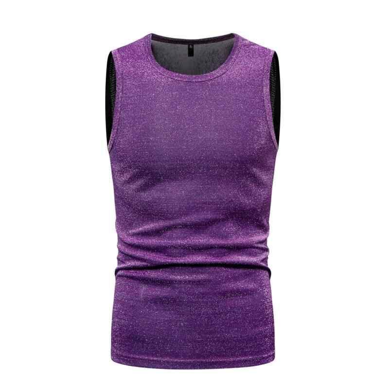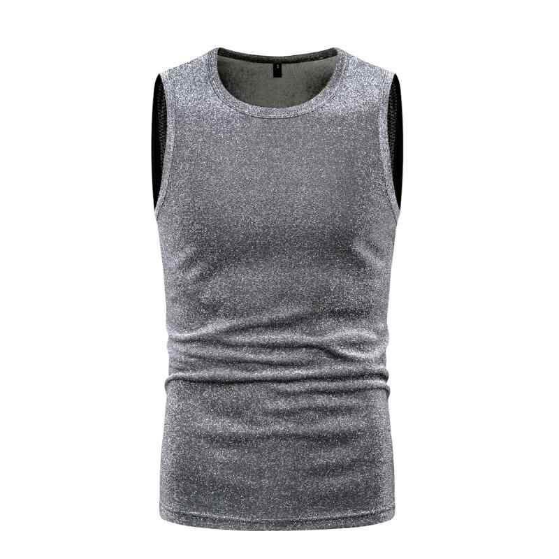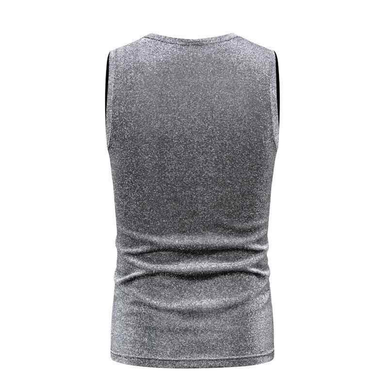タンクトップ メンズ 夏物 サマーウェア シンプル ミニマルデザイン おしゃれ トレンド シャイニー 光沢感 きらきら 金プリント メタリック柄 ノースリーブ 欧米風 トップス | cybercart