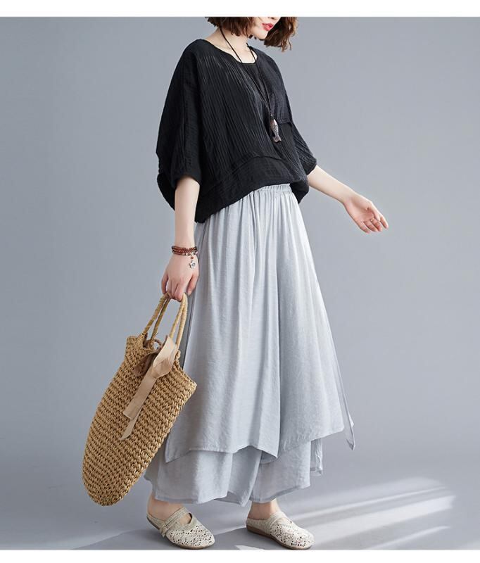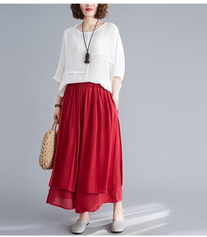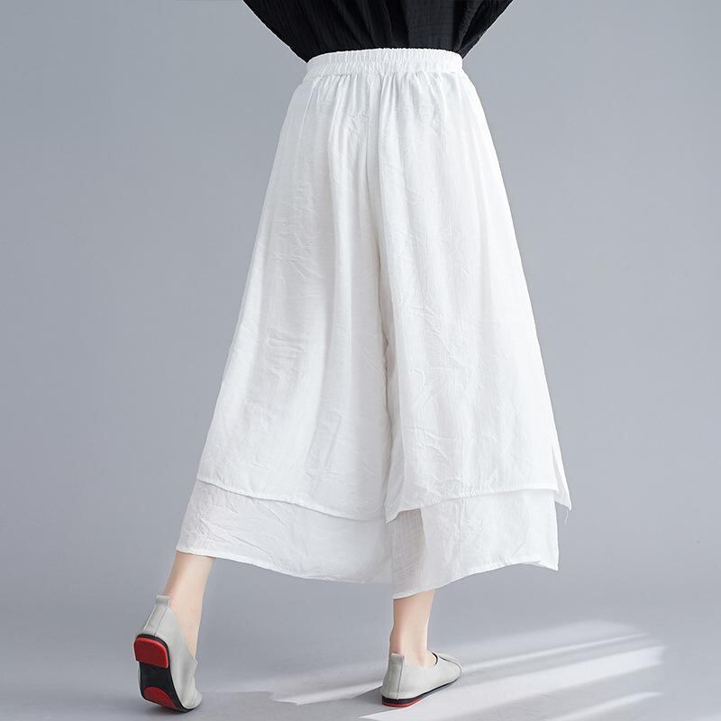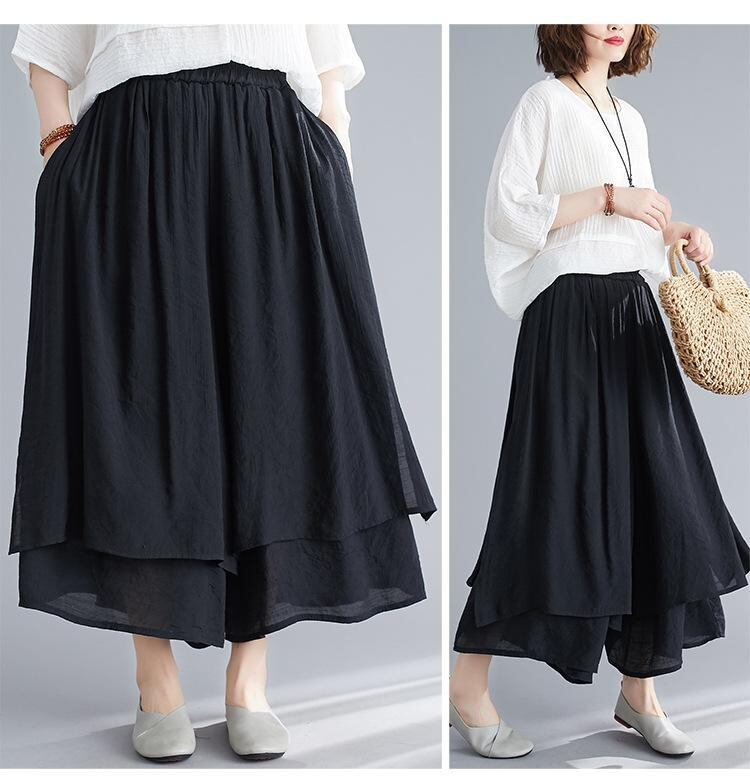 パンツ レディース 女性用 綿麻 ワイドパンツ アンクル丈 九分丈 スカーチョ スカート見え カジュアル リラックス 快適 通勤 オフィス 普段使い 無地 ホワイト グレー ブラック