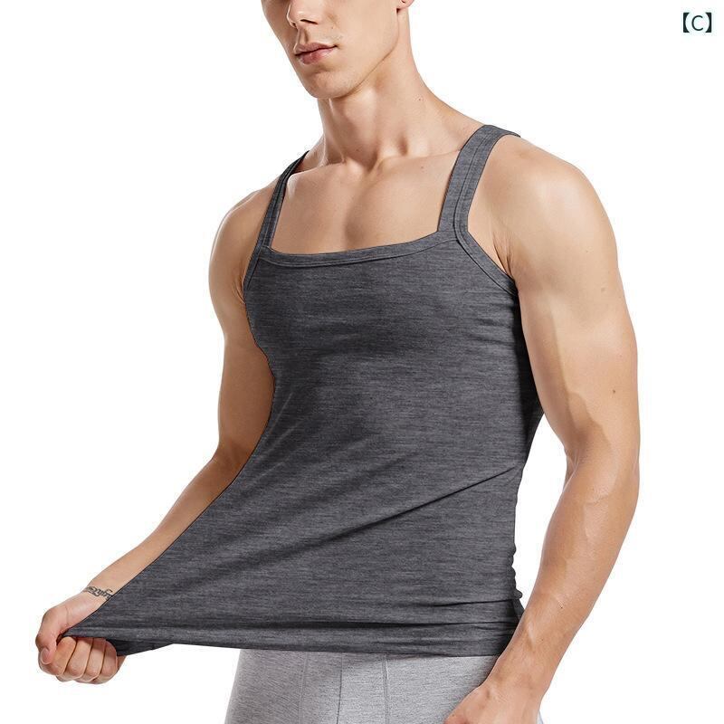 タンクトップ メンズ 男性 スクエアネック ストレッチコットン フィットネス ジム 筋トレ インナー アンダーウェア 運動 スポーツ 無地 白 黒 グレー 紺 適度な厚み 快適