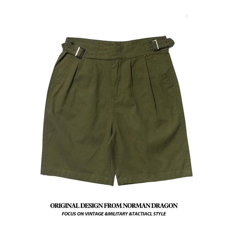 ショートパンツ メンズ 男性 アメリカン ミリタリー ワーク レトロ イギリス軍 グルカ キャンバス コットン 綿 無地 ハイウエスト ウォッシュ加工 ストレート ノンストレッチ 通気性 夏用 カジュアル 普段使い カーキ ミリタリーグリーン