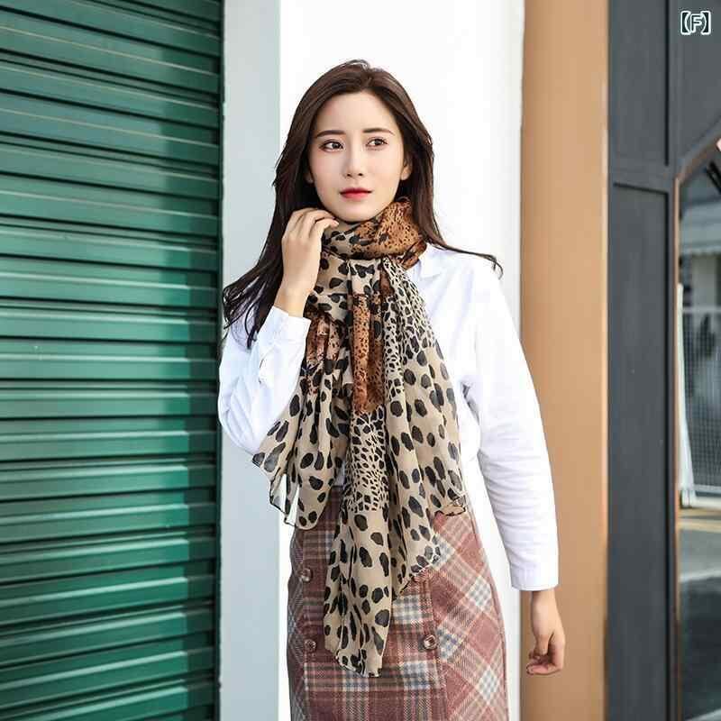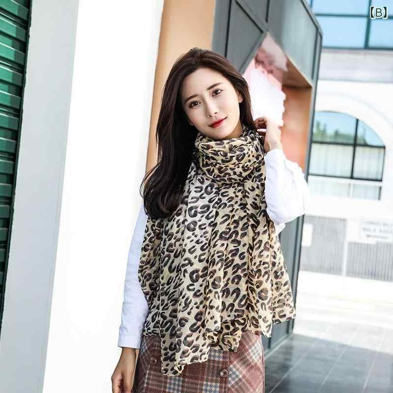 スカーフ レディース ヒョウ柄 大判 薄手 シフォン ストール Uヒョウ柄 プリント 欧米風 ロング オールシーズン ファッション小物 アクセント 普段使い カジュアル