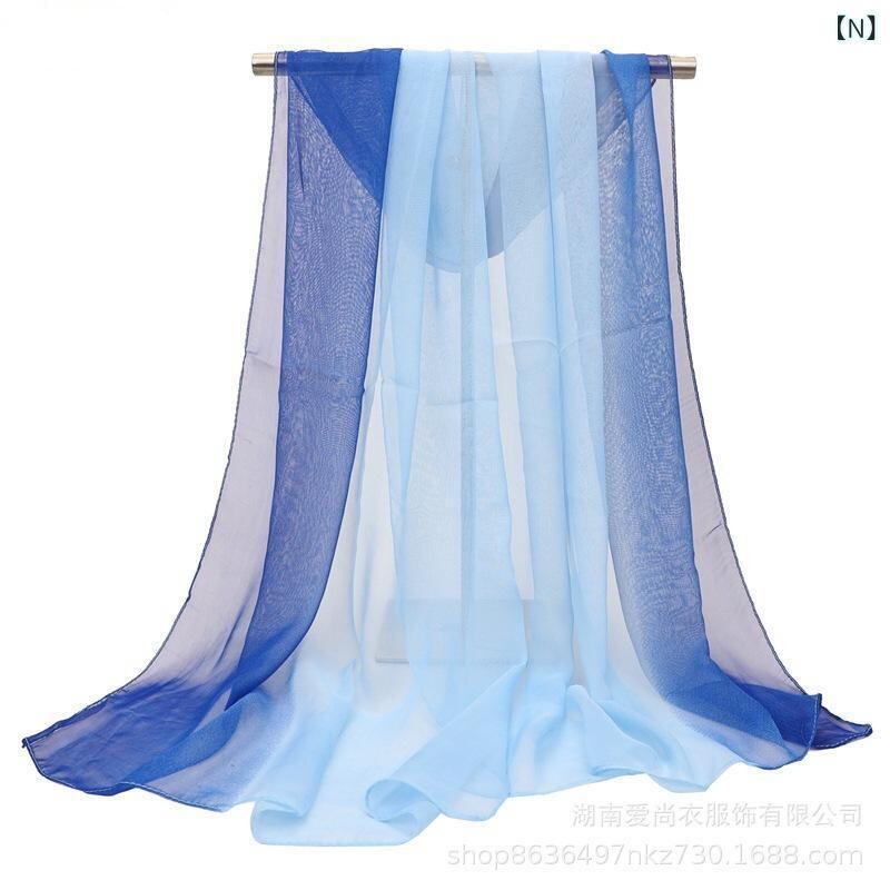 スカーフ レディース グラデーションカラー ジョーゼット 薄手 シアー ロング ダンス フィットネス レッスン 通勤 オフィス カジュアル 普段使い 夏用 軽量 接触冷感 エレガント 上品 フェミニン ストール 女性用