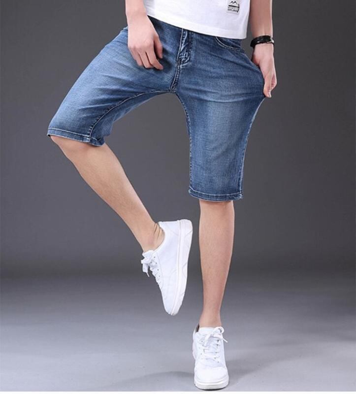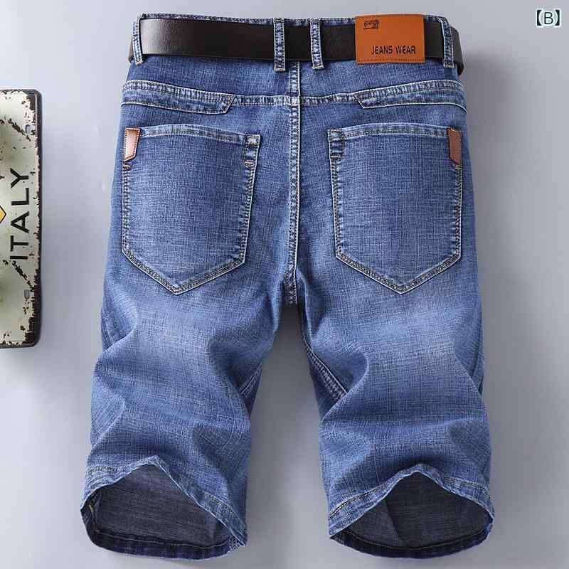 デニムパンツ メンズ 五分丈 ハーフパンツ ストレート 薄手 ゆったり ルーズ ワイド ストレッチ 伸縮性 綿 コットン カジュアル レジャー 普段使い 外出着 ブラック ブルー 黒 青 夏物