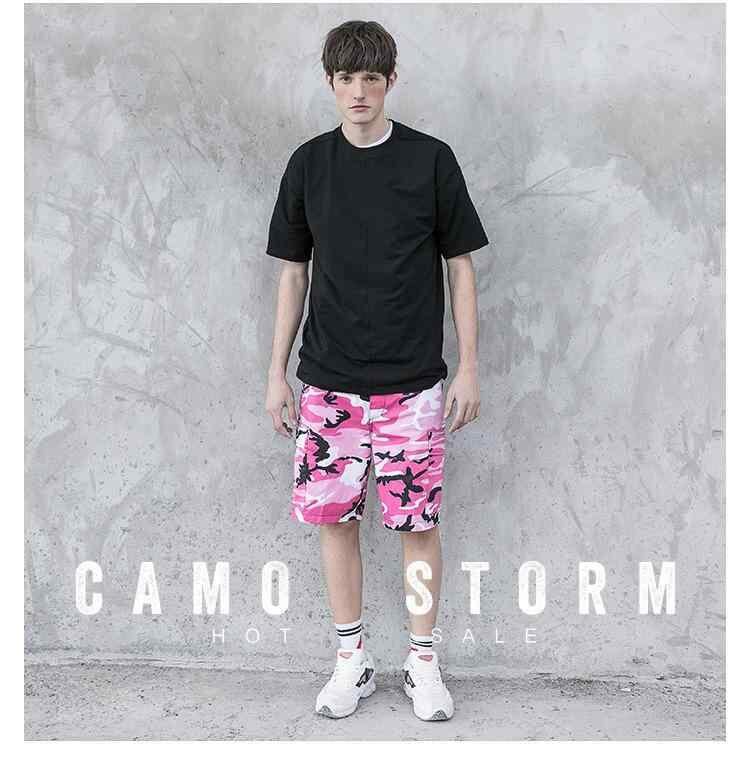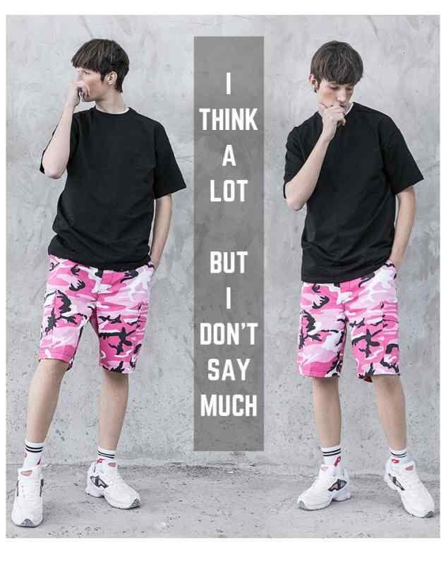 ハーフパンツ メンズ ゆったり ルーズフィット ワイドシルエット カーゴパンツ 迷彩柄 ピンク 多ポケット 五分丈 厚手 ヒップホップ アメリカンストリート カジュアル 普段使い コットン 耐摩耗性