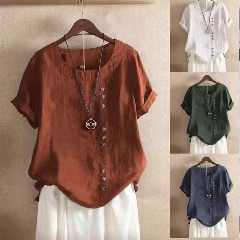 ・カテゴリ: Tシャツ・スタイル: レトロ、カジュアル、韓国風・主な素材: 綿麻(綿95%以上)・ネックライン: クルーネック・袖丈: 半袖・袖タイプ: レギュラー・フィット: ゆったり・タイプ: プルオーバー・デザイン要素: ボタン・対象: レディース・カラー展開: グリーン、ピンク、ホワイト、ネイビー、ブラウン・サイズ展開: S、M、L、XL、XXL、XXXL、4XL、5XL