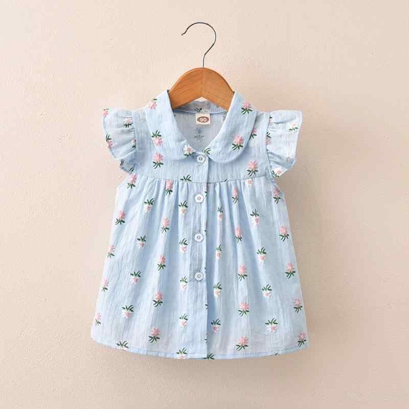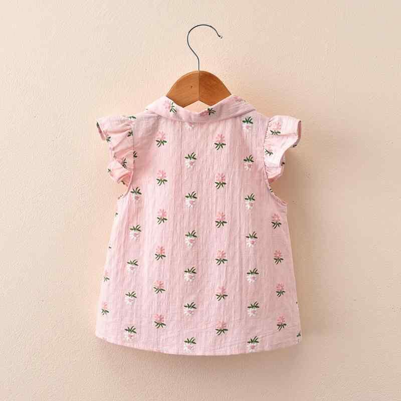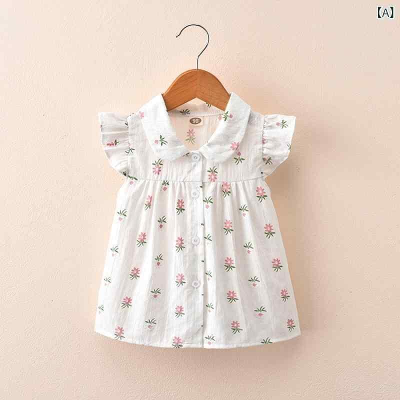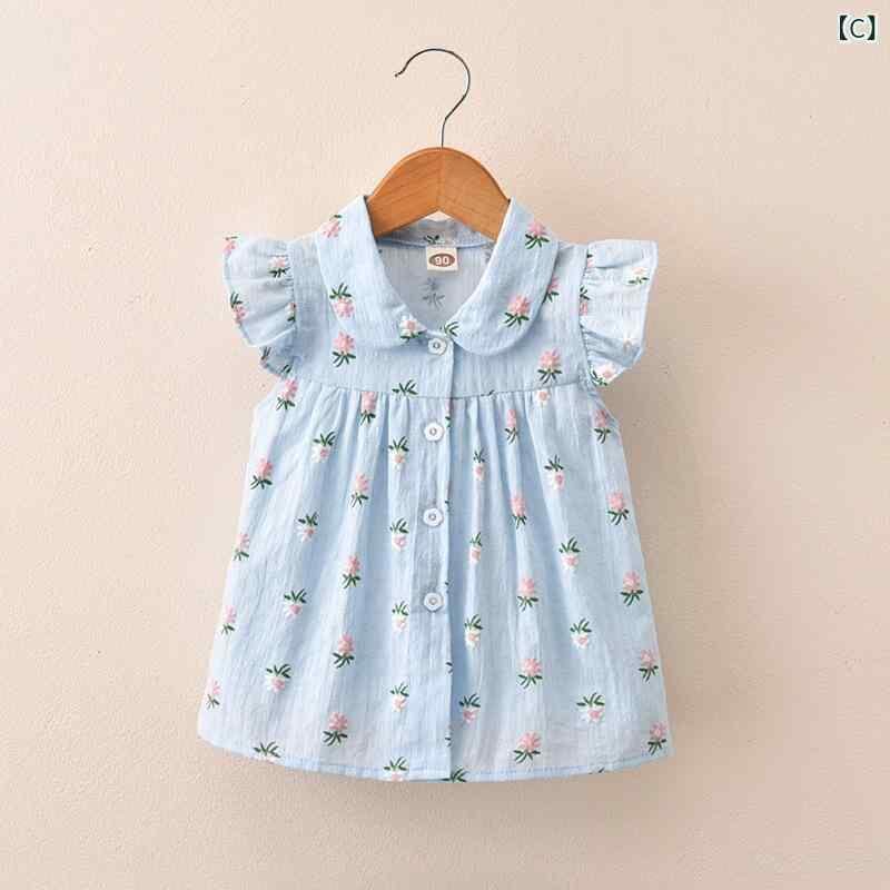 シャツ 女の子 キッズ 花柄 フリル袖 開襟 半袖 綿 コットン ブラウス 薄手 カジュアル トップス ホワイト ピンク ライトブルー フルーツ柄