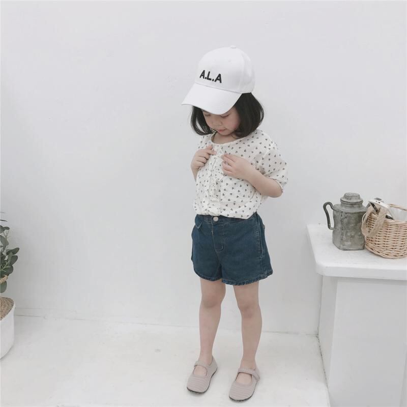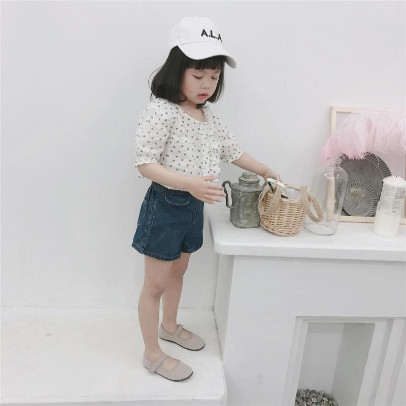 シャツ キッズ 女の子 ベビー 乳幼児 丸首 前開き 半袖 小花柄 綿 コットン 清涼感 さらさら かわいい 普段使い お出かけ ホワイト トップス
