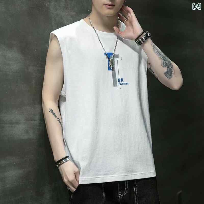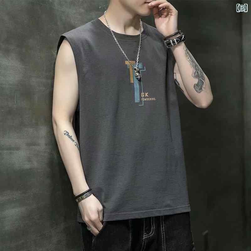 タンクトップ メンズ ノースリーブ Tシャツ ベスト 男性用 スポーツ バスケットボール トレーニング ランニング 薄手 速乾 吸汗 ゆったり ビッグシルエット カジュアル ストリート 普段使い 部屋着 夏用 ポリエステル