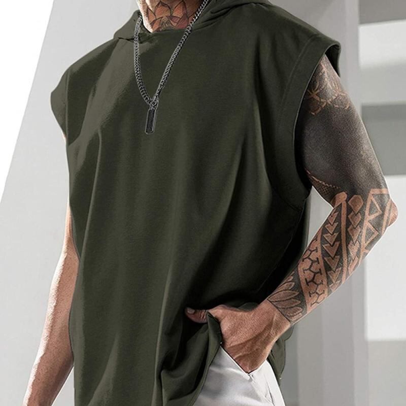 タンクトップ メンズ 男性 フード付き ノースリーブ プルオーバー ベスト フィットネス スポーツ カジュアル 運動 ゆったり ルーズフィット ポリエステル 薄手 大きいサイズ