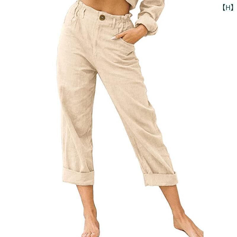カジュアルパンツ レディース 無地 ハイウエスト ゆったり ストレート フルレングス 綿麻素材 ポリエステル混紡 ストレッチ 普段使い ルームウェア ワンマイルウェア リラックス 日韓風 豊富なカラー