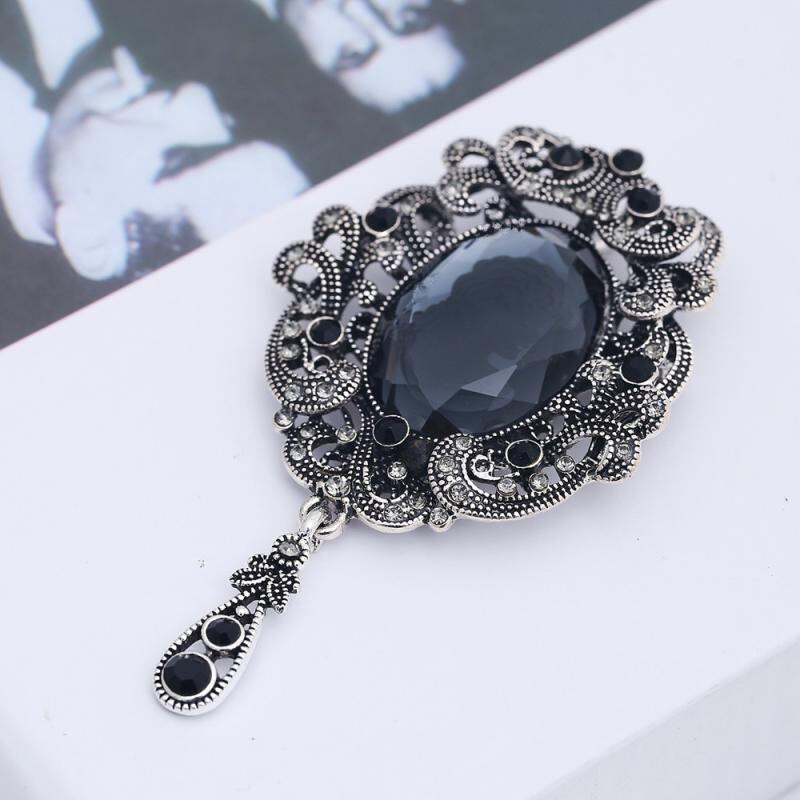 ブローチ レディース 欧米風 レトロ ヴィンテージ アンティーク調 美人画 花柄 クリスタル装飾 合金製 上品 エレガント フォーマルドレス パーティードレス 入学式 卒業式 結婚式 オケージョン アンティークシルバー