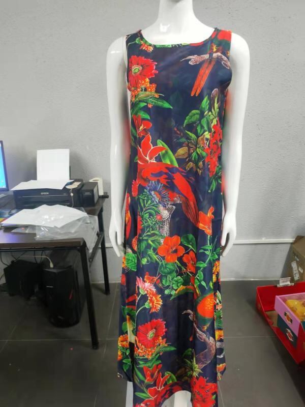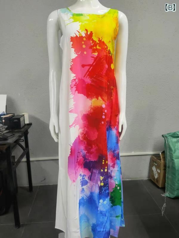 ワンピース レディース 花柄プリント ラウンドネック ノースリーブ ゆったり 体型カバー ロング丈 マキシ丈 Aライン フレアシルエット ポリエステル ストレッチ カジュアル 普段使い リラックスウェア
