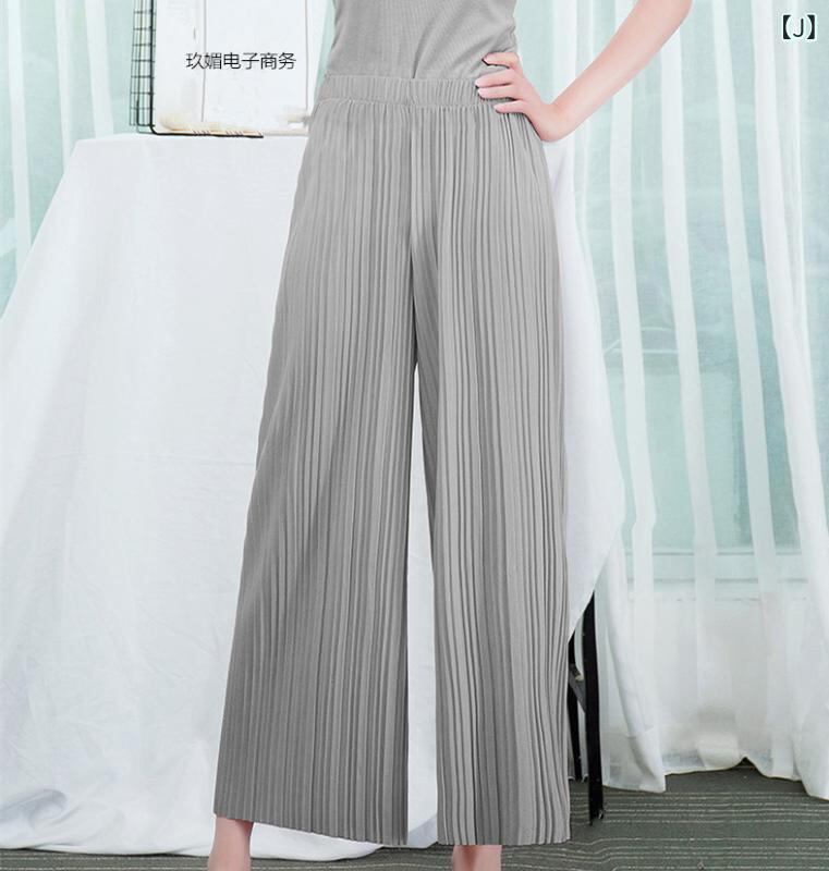 ワイドパンツ レディース プリーツ シフォン ハイウエスト ゆったり スカンツ ドレープ感 乱麻ポリエステル 九分丈 薄手 ストレッチ カジュアル リラックス 大きいサイズ