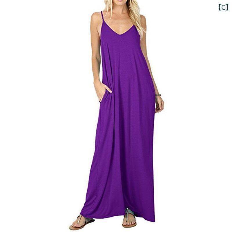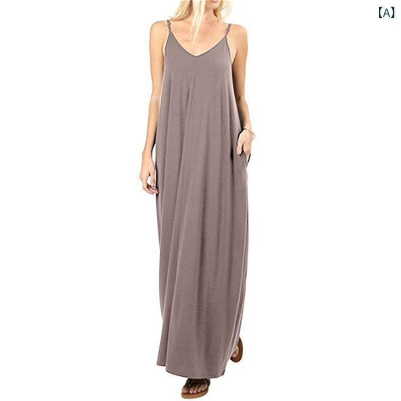 ワンピース レディース ゆったり ロング キャミソール Vネック Aライン 無地 ポケット付き ノースリーブ 綿混素材 リラックス カジュアル 普段使い マキシ丈 多色展開