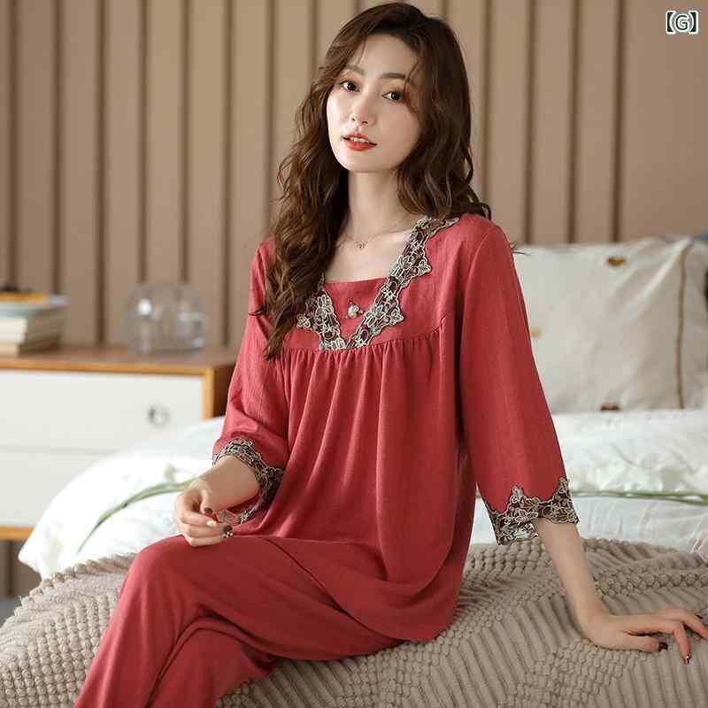 ・カテゴリ: セットアップ ・主な素材: モダール(レーヨン30〜50%混) ・スタイル: プルオーバー ・デザイン: シンプルカジュアル ・厚み: 薄手 ・ネックライン: クルーネック ・袖丈: 長袖 ・パンツ丈: ロング ・機能: リラックス、通気性、睡眠時、ルームウェア、快適、外出可能 ・対象: レディース ・シーン: アウトドア、ルームウェア ・サイズ展開: M、L、XL、XXL、XXXL