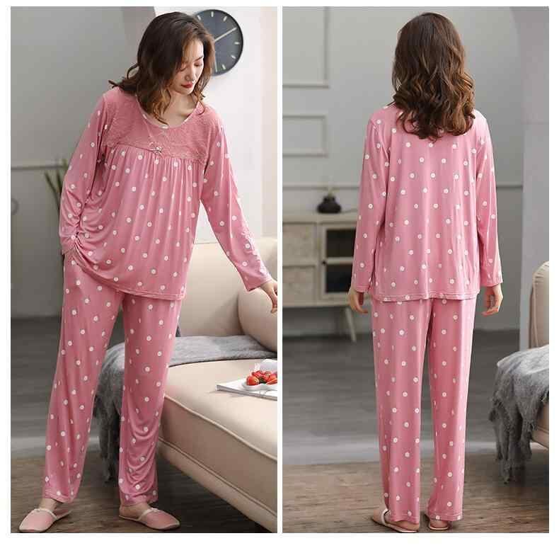 パジャマ レディース 春秋 夏用 薄手 長袖 前開き 上下セット 大きいサイズ ゆったり モダール 綿 レーヨン混 ラウンドネック ロングパンツ ルームウェア 部屋着 快適 普段使い リラックス