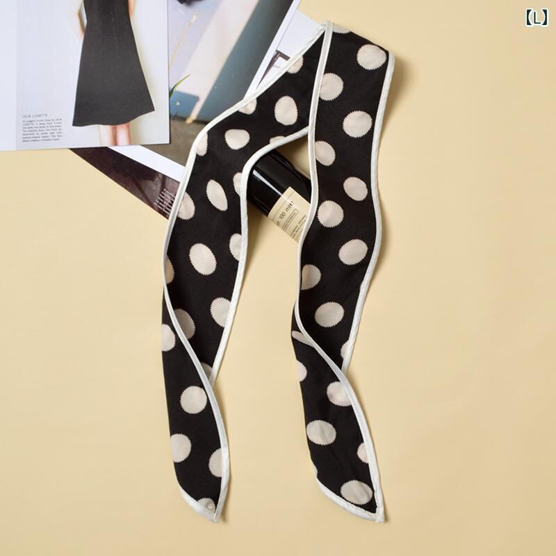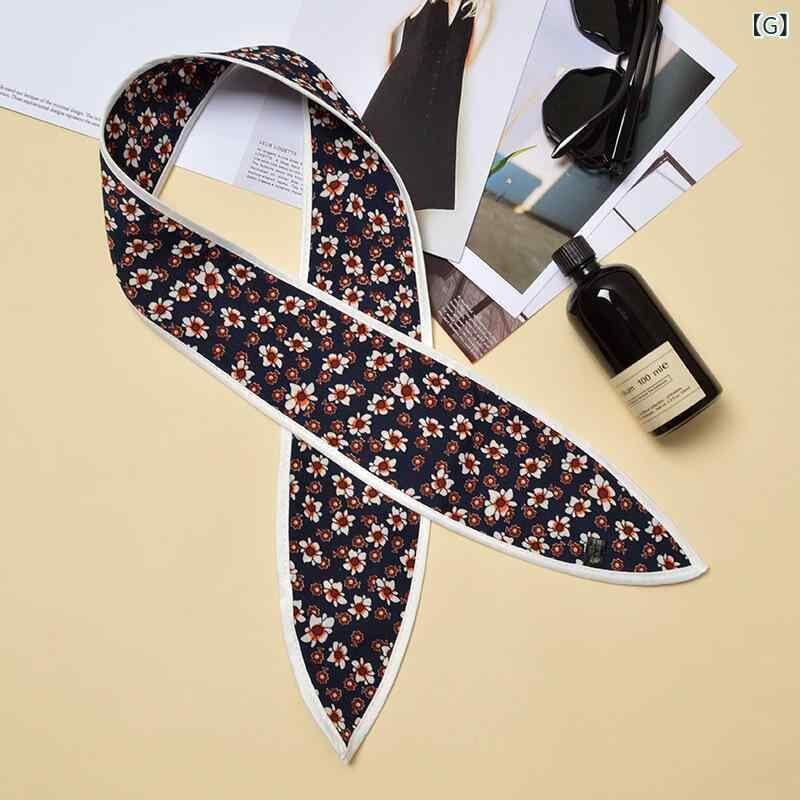 スカーフ レディース シフォン シルク ロング 細長 パイピング ネックアクセサリー 首元 バッグチャーム ヘアアクセサリー 髪飾り マルチユース オールシーズン 千鳥格子 ドット柄 小花柄 ペイズリー柄 ストライプ柄 星柄 波柄