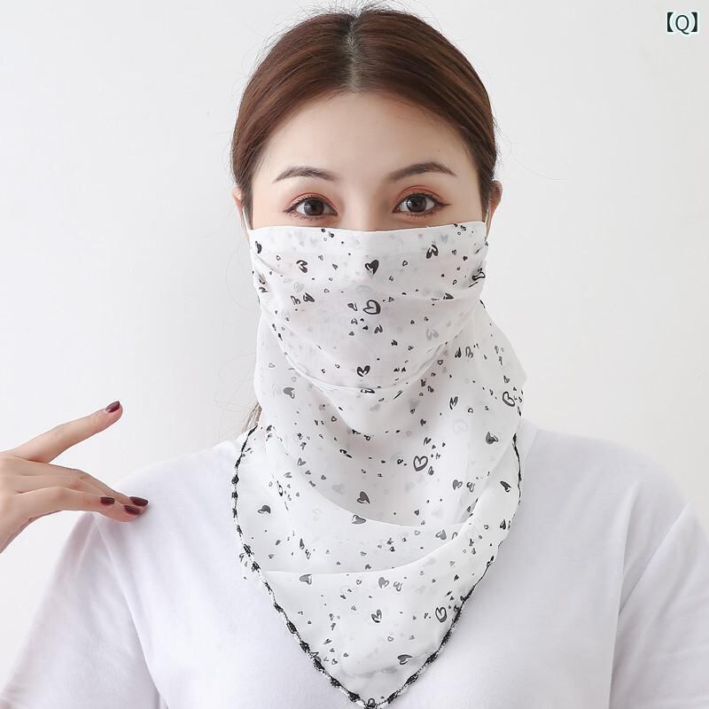 フェイスカバー レディース UVカット 紫外線対策 シフォン 薄手 軽量 通気性 蒸れにくい ネックガード 首元カバー 日焼け防止 フェイスマスク ストール 三角タイプ 夏用 日よけ