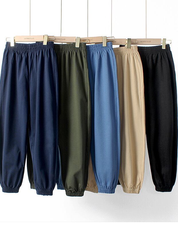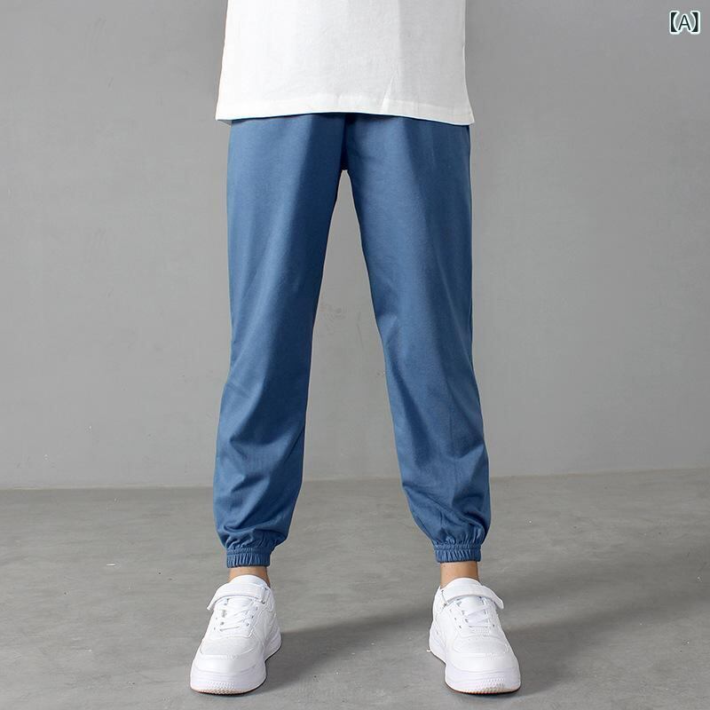 キッズ 男の子 女の子 男女兼用 ジュニア ロングパンツ 夏 春 秋 薄手 防蚊 虫除け ニット 綿100% ソフトタッチ スポーツ 運動着 部屋着 カジュアル 韓国ファッション 無地 ボトムス ウエストゴム