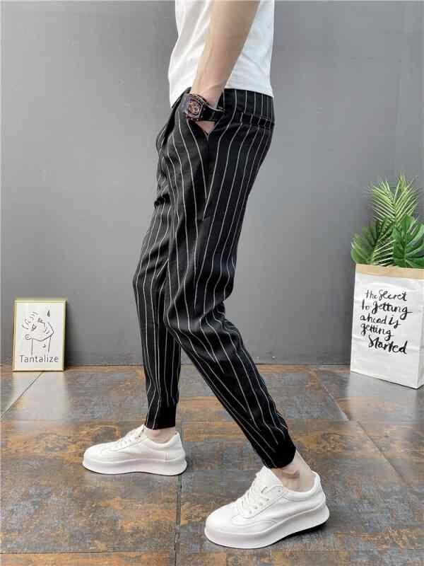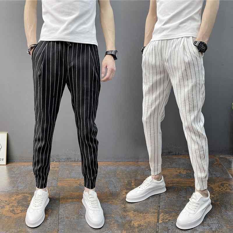 パンツ メンズ ストライプ 九分丈 テーパード ジョガーパンツ 夏用 薄手 接触冷感 ウエストゴム 伸縮性 ポリエステル混紡 細見え効果 カジュアル イージーパンツ