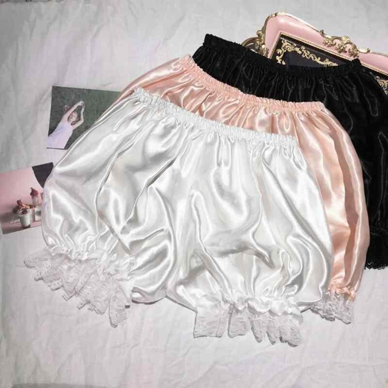 ペチパンツ レディース ロリータ ふわふわ かぼちゃパンツ ショートパンツ レース フリル 細見え 透け防止 インナー 安全パンツ ポリエステル素材 ミドルウエスト ルームウェア 部屋着 ホワイト ピンク ブラック