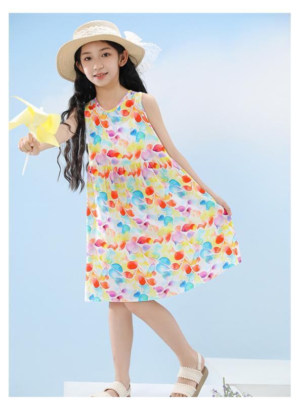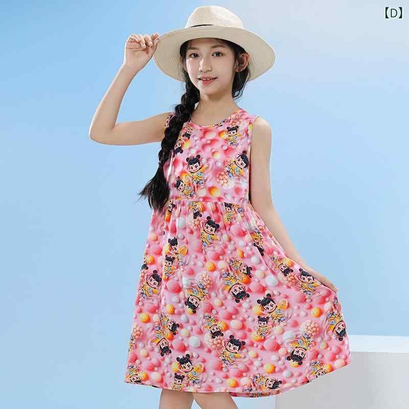 ワンピース キッズ 女の子 ベビー 子供用 キャミソール 夏 春秋 スリムフィット ルームウェア パジャマ レーヨン 再生繊維 柔らか素材 プリーツスカート 公主風 花柄 ドット柄 チェック柄 ストライプ柄 キャラクター柄