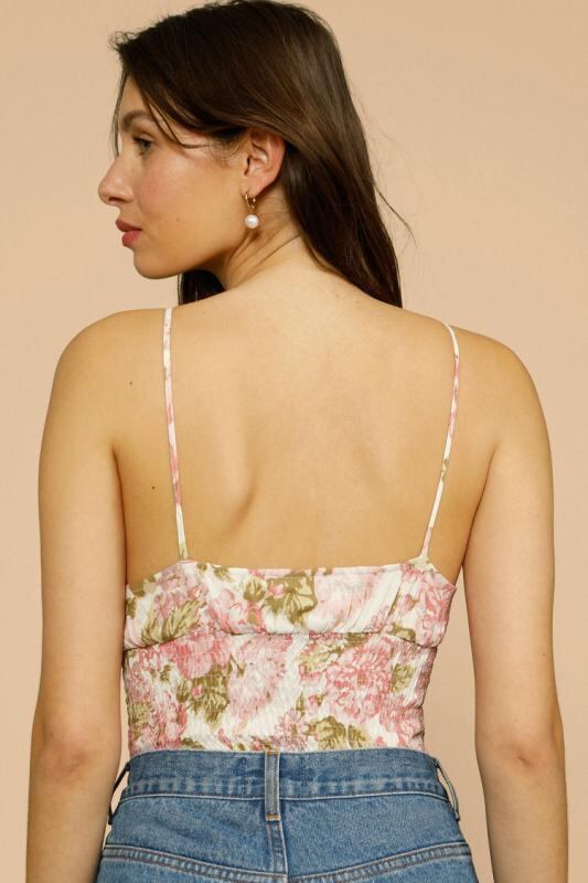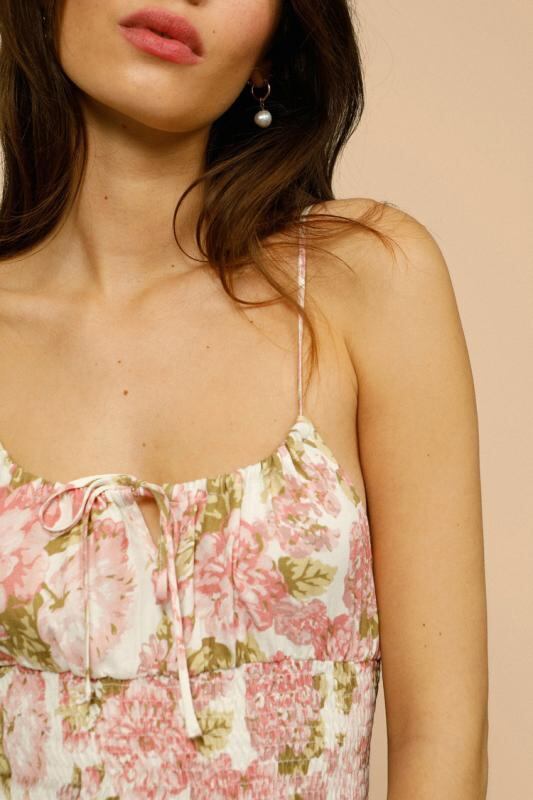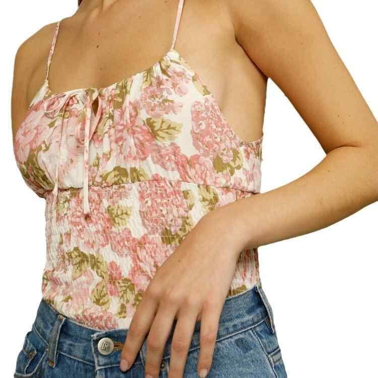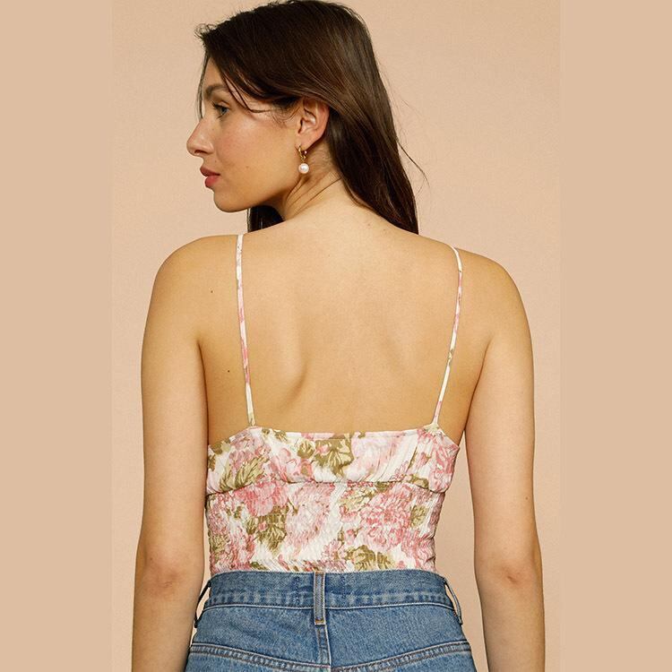 キャミソール レディース 花柄プリント 再生繊維 接触冷感 フレンチレトロ スウィート フェミニン 高伸縮性 細身シルエット 快適な肌触り デイリーユース ピンク
