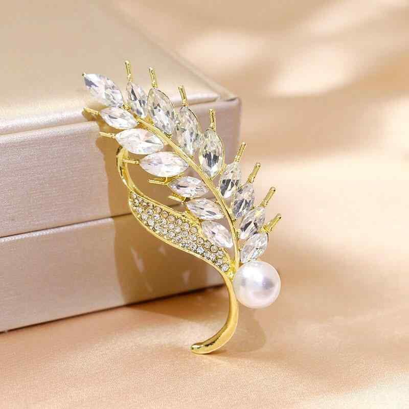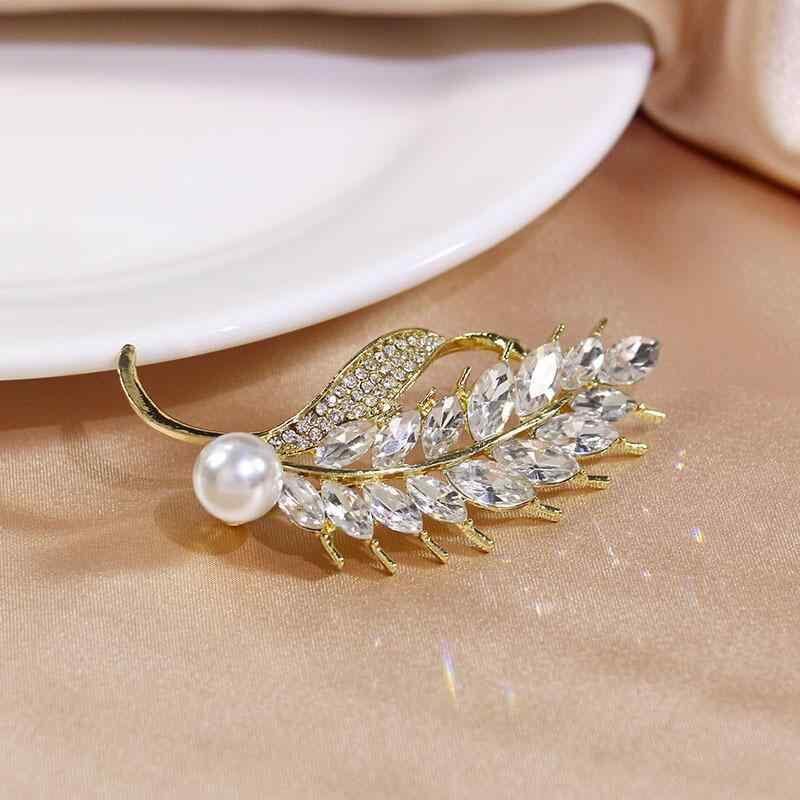 ブローチ レディース 韓国風 ファッション エレガント クリスタル 麦穂 パール ラインストーン 合金素材 上品 華やか 2WAY スカーフ留め ピン アクセサリー フォーマル カジュアル 多機能 | cybercart