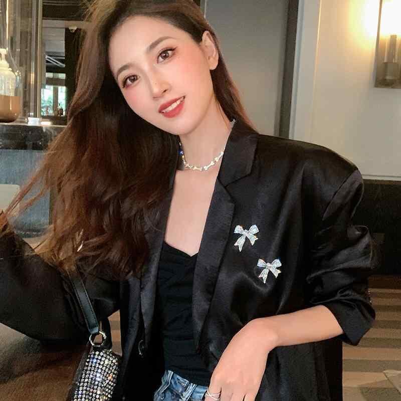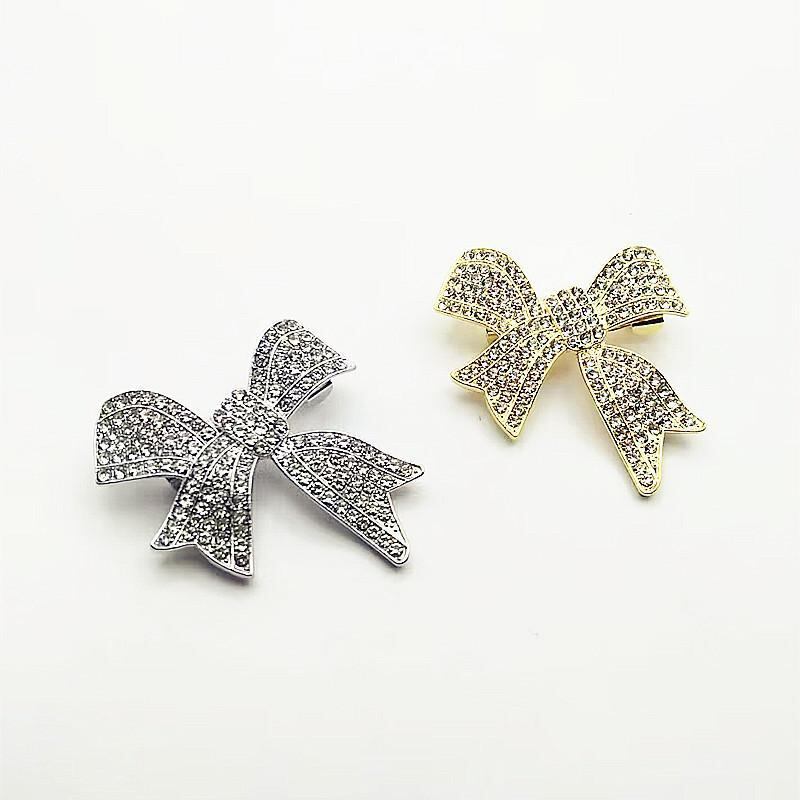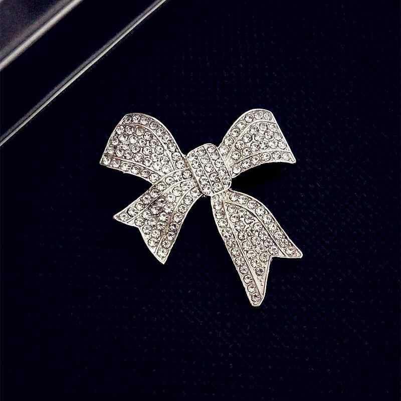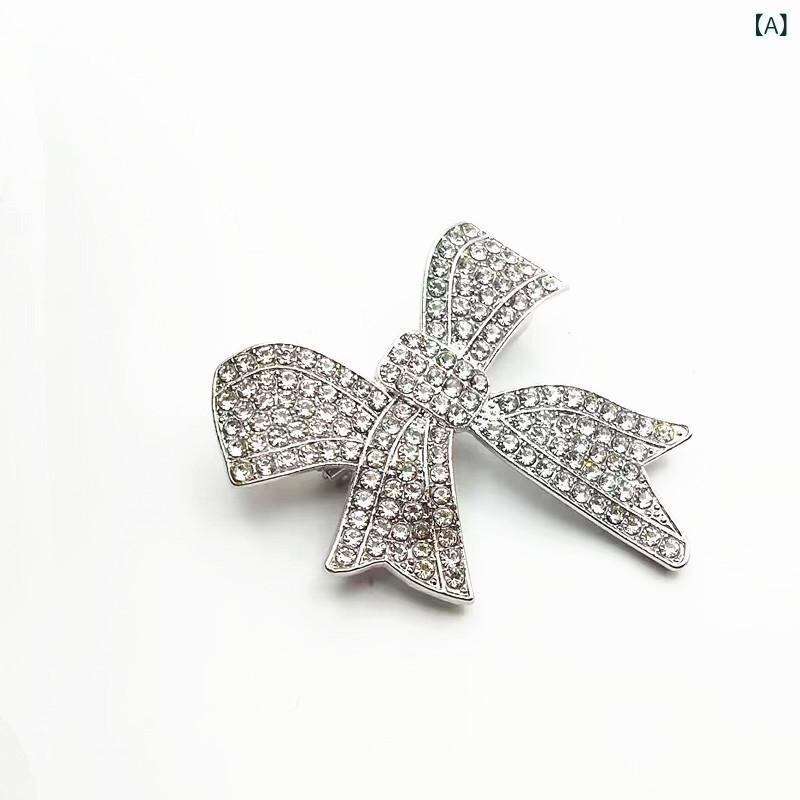 ブローチ レディース ラインストーン リボン 蝶結び 個性的 高級感 上品 エレガント 華やか 合金製 アウター ジャケット コート 服 ピンブローチ ファッション小物 コサージュ シルバー ゴールド
