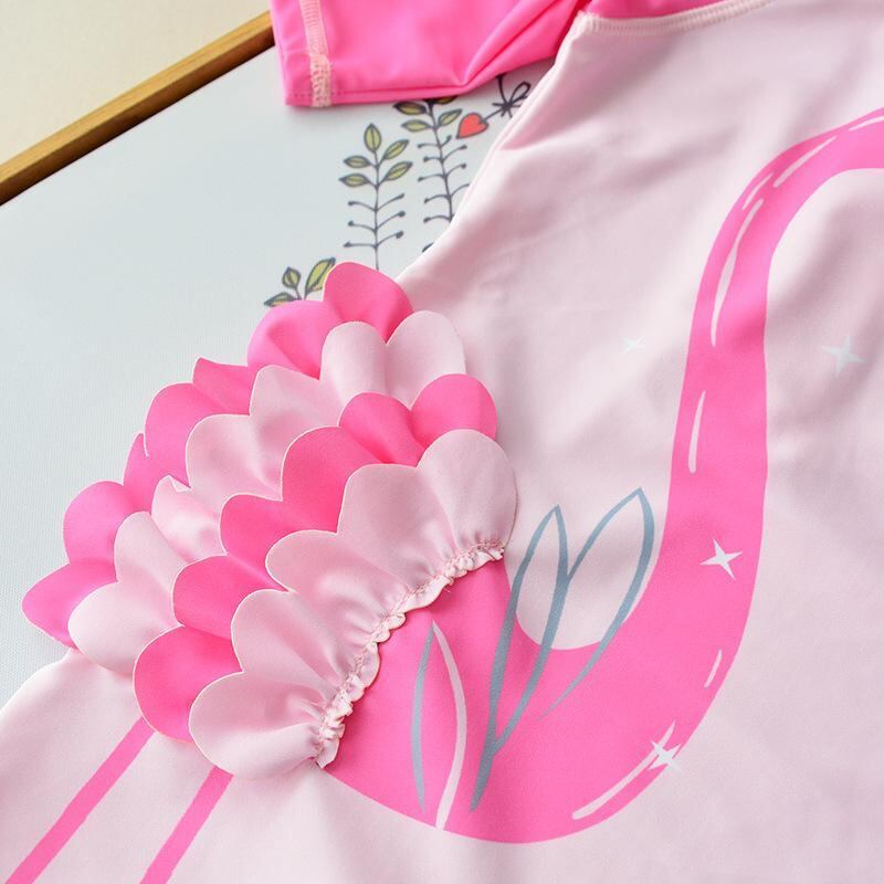 水着 キッズ 女の子 お姫様風 SNS映え かわいい ワンピース スイムウェア ポリエステル プール ビーチ 海水浴 タンチョウ鶴柄 1歳から6歳