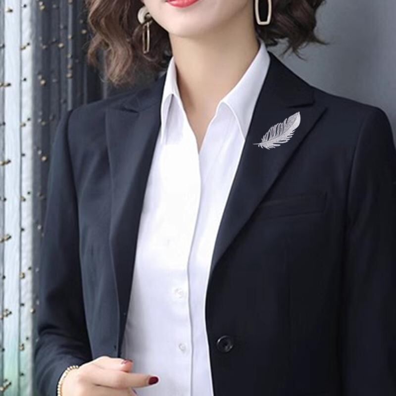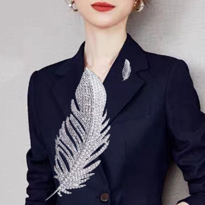 胸針 レディース 韓国風 エレガント 微細なジルコニア フェザー 銅製 シルバー 万能 スーツ コート ファッション小物 アクセサリー 装飾 多機能 2WAY 通勤スタイル