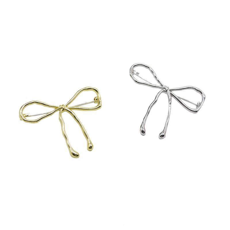 ブローチ レディース メタル リボン 蝶々結び シンプル 上品 華奢 個性派 デザイン 合金製 日韓ファッション アクセサリー 小物 ゴールド シルバー 通勤 オフィス フォーマル カジュアル ワンポイント 卒業式 入学式 結婚式
