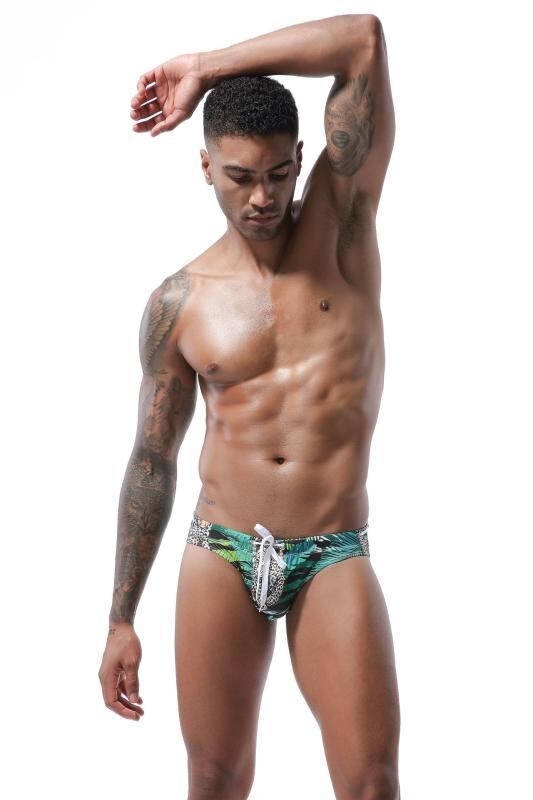 スイムショーツ メンズ 男性用 ローライズ 三角 ビキニ スイムパンツ ヒョウ柄 トロピカル柄 デジタルプリント ポリエステル 水着 温泉 ビーチ 海水浴 マリンスポーツ