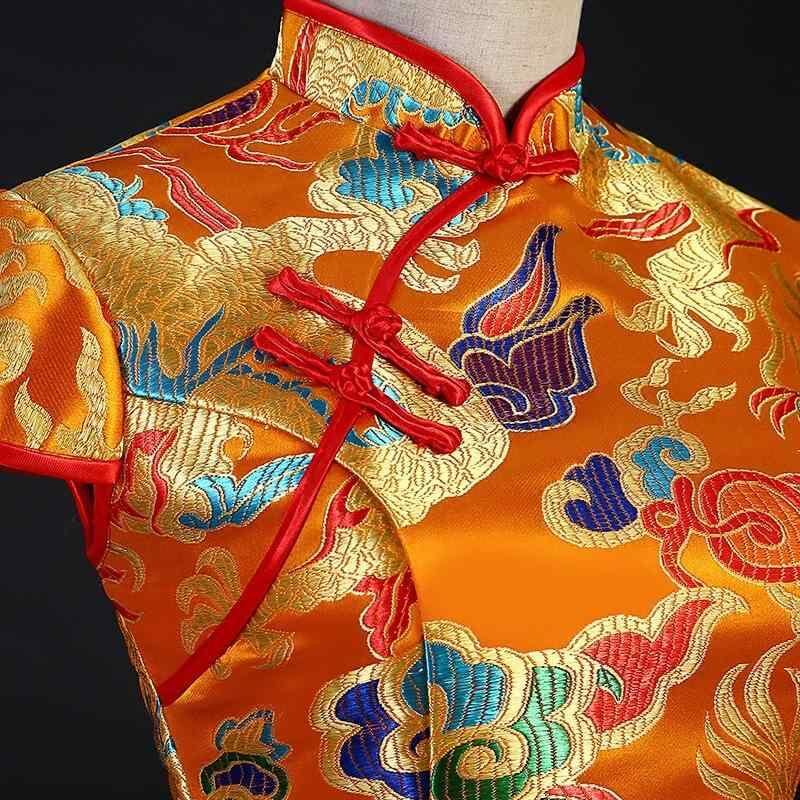 ・主な素材: ポリエステル90%、綿10%・丈: ロング丈・ネックライン: スタンドカラー・袖丈: キャップスリーブ・スリット: 低め・デザイン: 立体装飾・カラー展開: レッド、レッドグリーンパイピング、イエローレッドパイピング・サイズ展開: XS、S、M、L、XL、XXL、XXXL・スタイル: エレガント・対象年齢: 成人・性別: レディース
