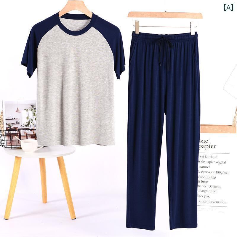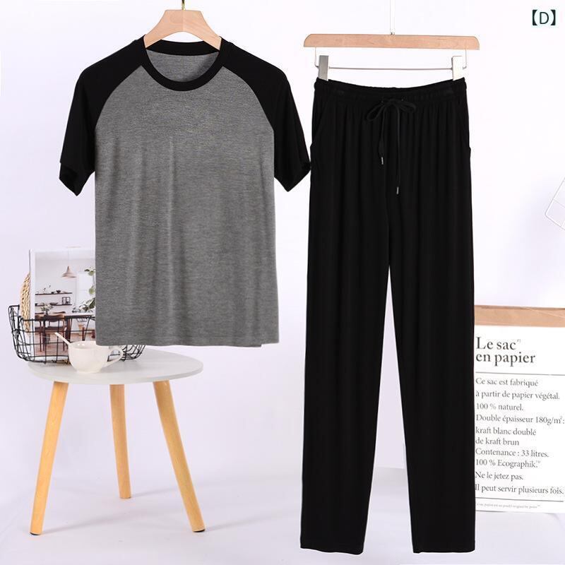ルームウェア メンズ モダール 薄手 半袖 クルーネック 長ズボン パジャマ 上下セット 夏用 部屋着 寝間着 接触冷感 通気性 伸縮性 ワンマイルウェア カジュアル