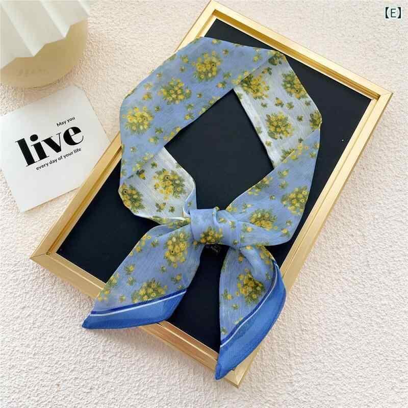 ミニスカーフ レディース 細身 ロング シフォン素材 オールシーズン 首元アクセサリー ネッカチーフ バッグハンドルスカーフ ヘアアクセサリー 髪飾り ファッション小物 オフィス カジュアル フォーマル 旅行 イベント マルチユース アクセント装飾