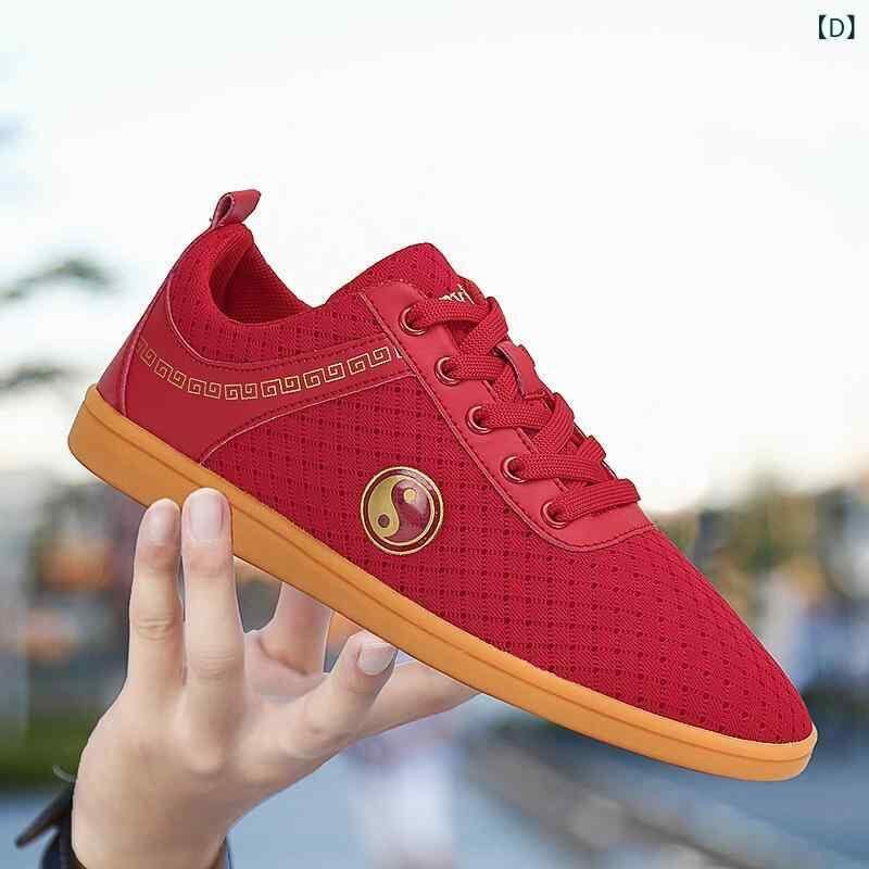 シューズ 男女兼用 太極拳 武術 トレーニング 練習 稽古用 スポーツ フィットネス ダンス ランニング 運動靴 軽量 柔軟 布製 メッシュ素材 天然ゴム底 滑り止め 通気性 ローカット ホワイト ブラック レッド